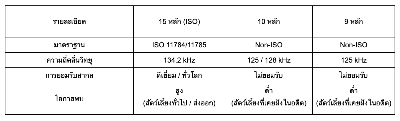 ข้อจำกัด: เนื่องจากไม่ใช่มาตรฐาน ISO เครื่องสแกนในบางพื้นที่อาจไม่สามารถอ่านค่าได้ และอาจพบปัญหาในการเตรียมตัวเพื่อเคลื่อนย้ายสัตว์เลี้ยงข้ามพรมแดนในประเทศที่มีมาตรการเข้มงวด ⚠️